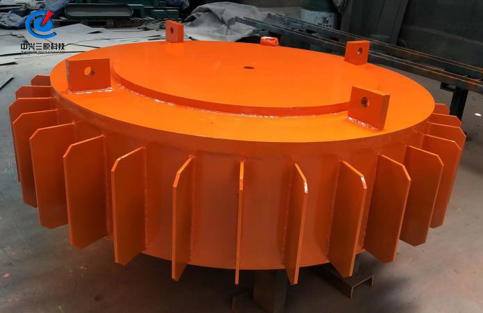 河北客戶訂購的電磁除鐵器信息: 適應(yīng)皮帶寬度:B=1400mm、 磁場強(qiáng)度:≥70mT 額定吊高:400mm。 電磁除鐵器是一種用于清除散狀非磁性物料中鐵件的電磁設(shè)備,一般安裝于皮帶輸送機(jī)的頭部或中部。通電產(chǎn)生的強(qiáng)大磁力將混雜在物料中的鐵件吸起后由卸鐵皮帶拋出,達(dá)到自動清除的目的,并能有效地防止輸送機(jī)膠帶縱向劃裂,保護(hù)破碎機(jī)、研磨機(jī)等正常工作。該除鐵器廣泛應(yīng)用于電力、礦山、冶金、建材、選煤、化工等行業(yè)。